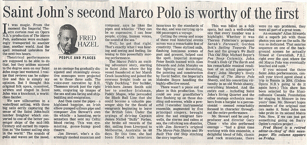 The Saint John String Quartet:David Adams: violin; Hok Kwan: violin; Sonja Adams: cello; Christopher Buckley: viola Back Row:Bill Dalzell: highland bagpipes; R.H. Thomson; Jim Stewart: tin whistle, low whistle, bodhran; Jon Goodman: uilleann pipes, flute; Dave Round: bass; Dave Bartlett: percussion; Franco Cuccinelli: acoustic and electric guitars; Bernie Houlahan: guitar, long-neck mandolin; Gordon Bok: 6 & 12-string guitar, principal vocal; Carol Rohl: Celtic harp. Front Row:John Frank: principal vocal; Theresa Patterson: principal vocal; John Murphy: principal vocal, concertina; Alan Edwards; Mike Boyer: principal vocal, harmonica, keyboard; Mark Lloyd: keyboard; Gary Chase: keyboard |